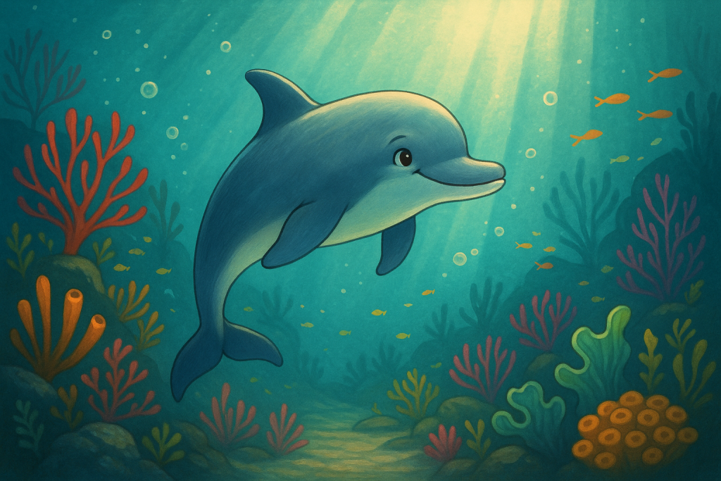 Léo était rapide, joueur et curieux. Il aimait sauter au-dessus des vagues, faire la course avec les poissons et jouer à cache-cache dans les coraux colorés.